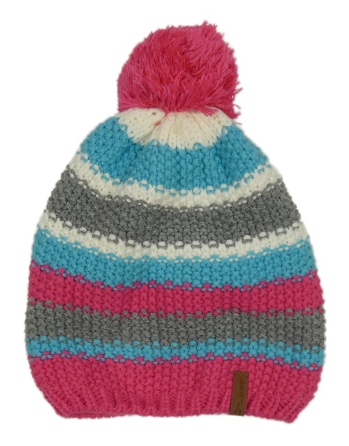 Bílo-růžovo-modrá pruhovaná čepice s bambulí Crane