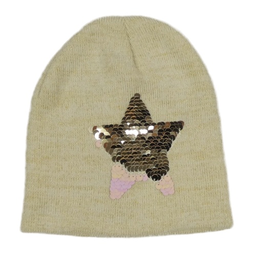 Smetanovo-zlatá melírovaná pletená čepice s hvězdou z překlápěcích flitrů