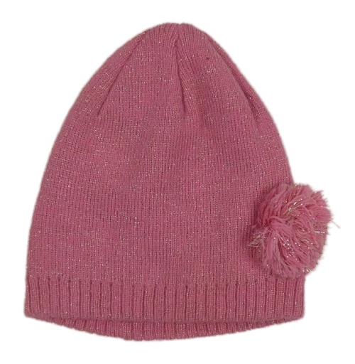 Růžová třpytivá pletená čepice s bambulí Tu