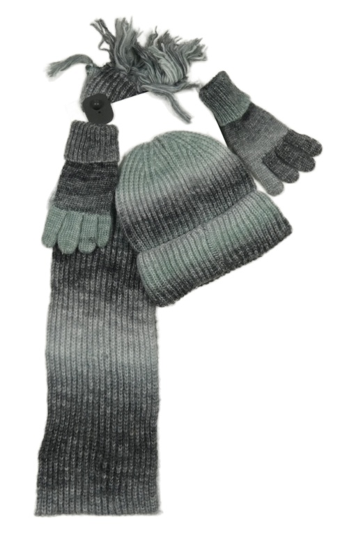 • Nové - 3set - Šedo-zelená pruhovaná pletená žebrovaná čepice + šála + rukavice F&F