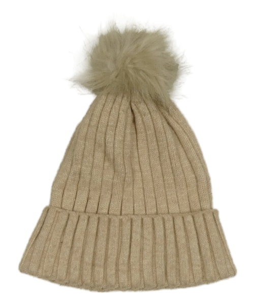 Béžová žebrovaná čepice s bambulí PRIMARK