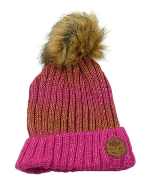 Růžovo-béžová pletená čepice s bambulí Wedze