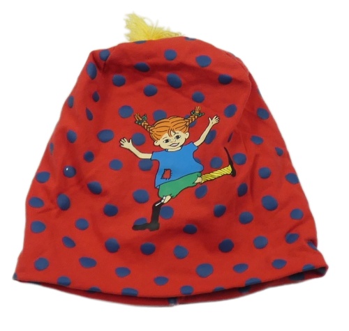 Červená puntíkatá čepice s obrázkem