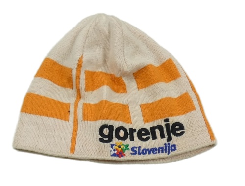 Smetanovo-oranžová čepice s nápisem