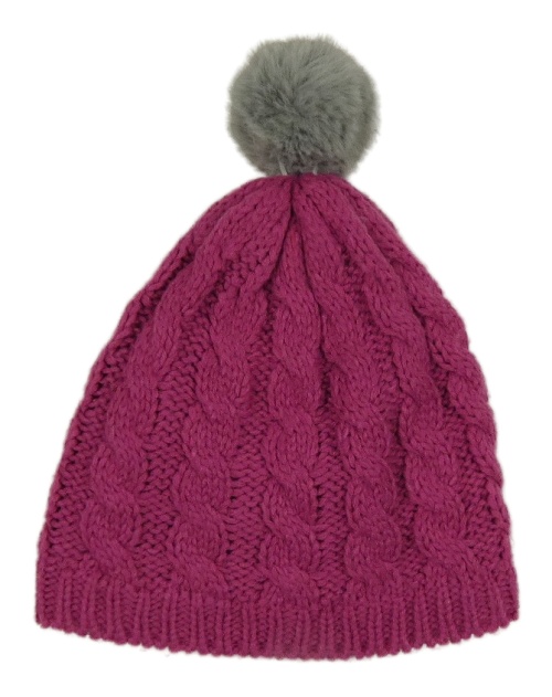 Tmavorůžová pletená vzorovaná čepice s bambulí