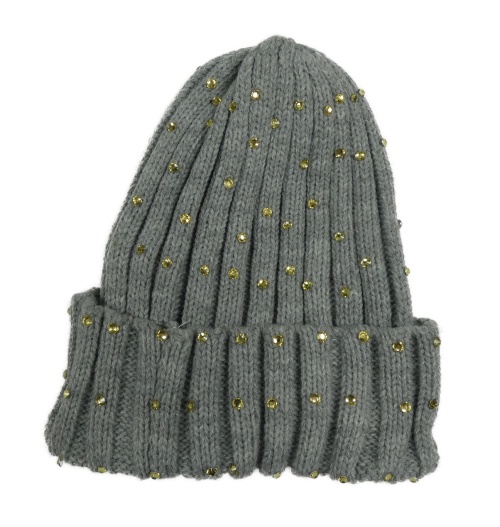 Šedá čepice s kamínky