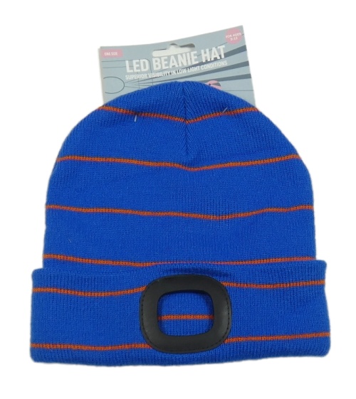 Nové - Modro-oranžová pruhovaná pletená čepice na led světlo