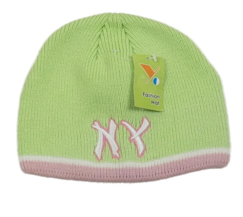 Nové - Pistáciovo-růžová pletená čepice s výšivkou