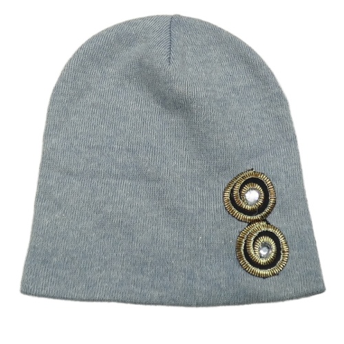 Šedomodrá melírovaná čepice s výšivkou a kamínky