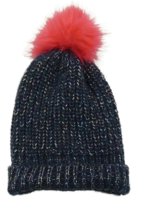 Tmavoodro-barevná melírovaná čepice s bambulí