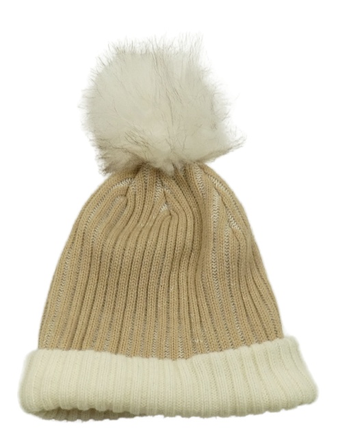 Hnědo-smetanová žebrovaná pletená čepice s bambulí