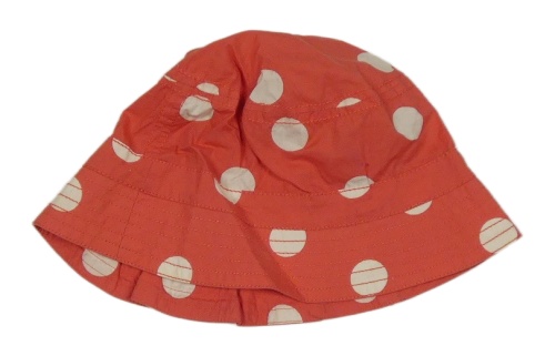 Jahodovo-bílý puntíkatý plátěný klobouk s nášivkou frugi