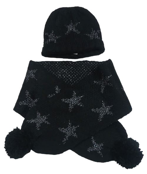 2set - Černá pletená čepice s hvězdami + šála M&S