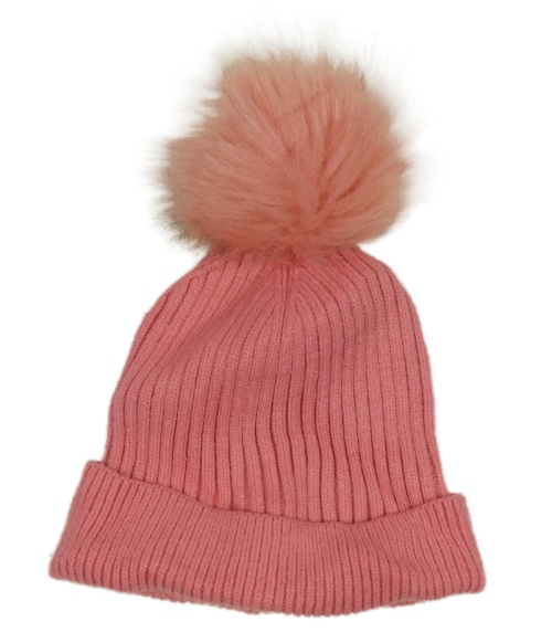 Růžová žebrovaná pletená čepice s bambulí C&A