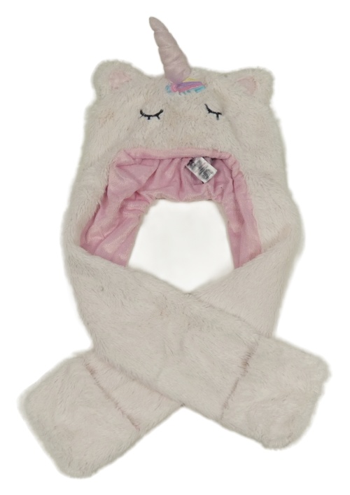 Bílá chlupatá čepice se šálou - jednorožec Peacocks