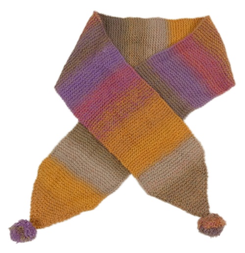 Filovo-žluto-hnědo-barevná šála s bambulemi