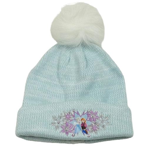 Světlemodrá melírovaná pletená čepice s Frozen a bambulí Disney