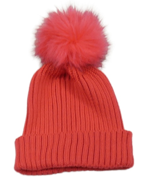 Malinová pletená čepice s bambulí