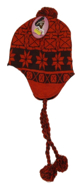 Nové - Červeno-hnědá vzorovaná pletená podšitá ušanka
