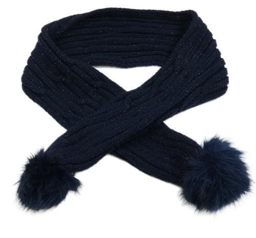 Tmavomodrá třpytivá pletená šála s bambulemi
