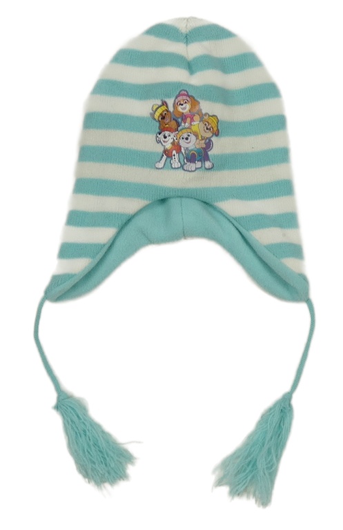 Tyrkysovo-bílá pruhované pletená podšitá ušanka s Paw Patrol Nickelodeon