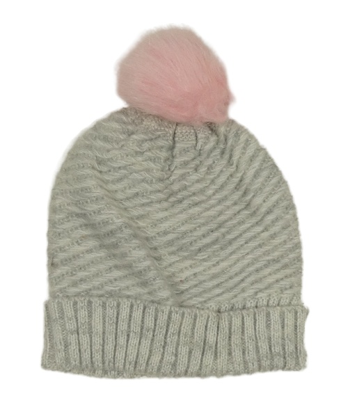 Světlešedá melírovaná žebrovaná čepice s bambulí