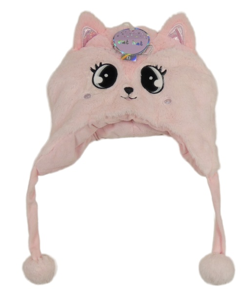 Nové - světlerůžová kožešinová zateplená čepice s bambulemi - kočička Dreamer