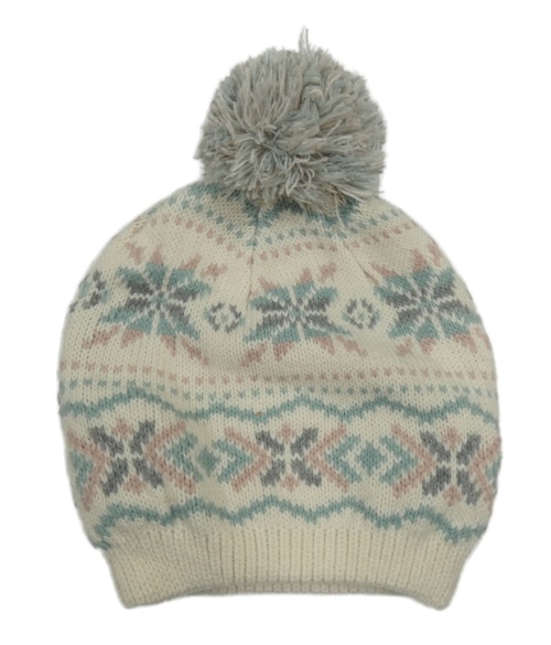 Bílo-modro-růžová vzorovaná čepice s bambulí