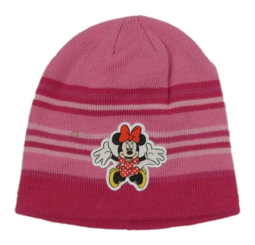 Světlerůžovo-růžová pruhovaná pletená čepice s Minií Disney