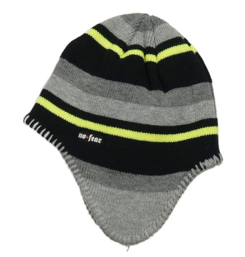 Šedo-černo-neonově žlutá pruhovaná čepice No Fear