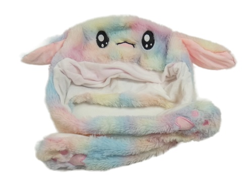 Barevná duhová chlupatá čepice - zajíc
