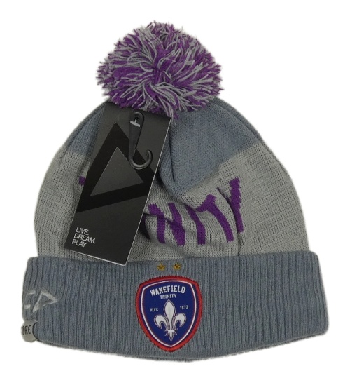 Nové - Šedo-fialová pletená podšitá čepice s nápisem a bambulí