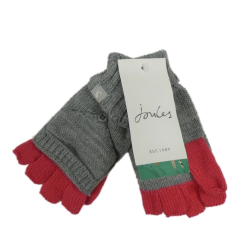 Nové - šedo-tmavorůžové melírované pletené překlápěcí rukavice joules