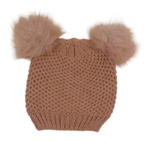 Starorůžová pletená čepice s bambulemi