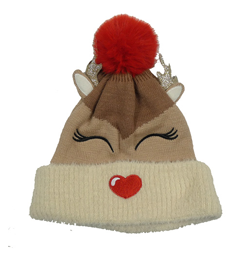 Hnědo-béžová pletená čepice s bambulí - sob