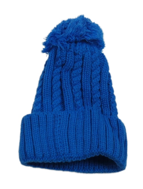 Modrá vzovovaná pletená čepice s bambulí