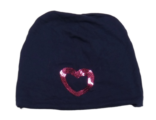 Tmavomodrá bavlněná čepice se srdcem z flitrů