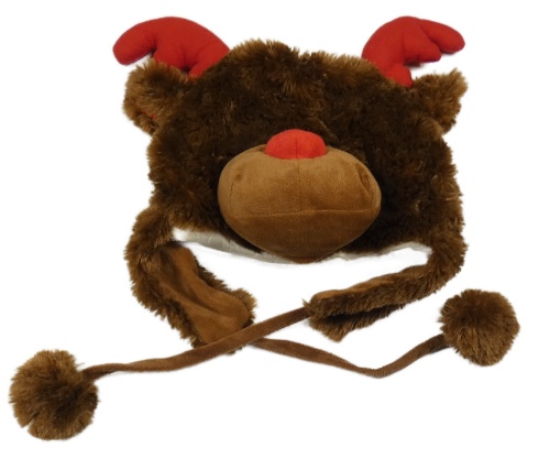 Hnědá chlupatá zateplená čepice s bambulemi - sob