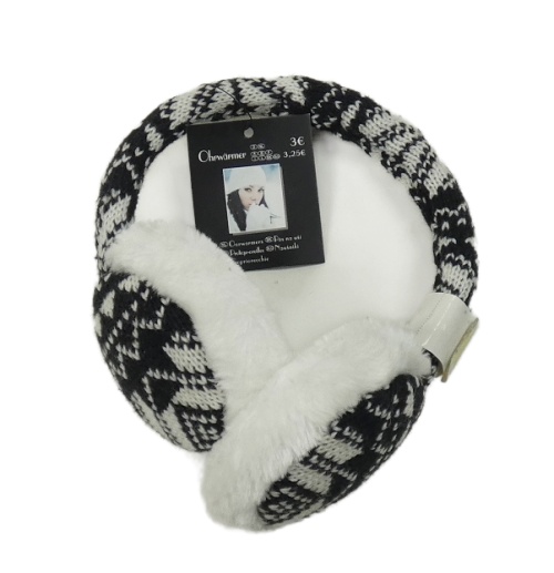 Nové - černo-bílé vzorované pleteno/chlupaté klapky na uši