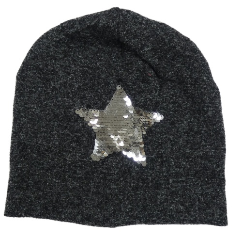 Antracitová melírovaná pletená čepice s hvězdou z flitrů