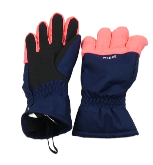 Tmavomodro-neonově korálové šusťákové funkční zimní prstové rukavice Wed'ze