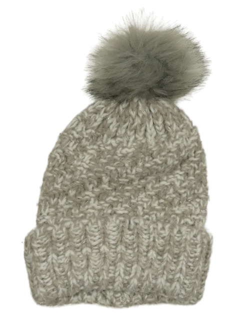 Šedo-bílá melírovaná třpytivá čepice s bambulí