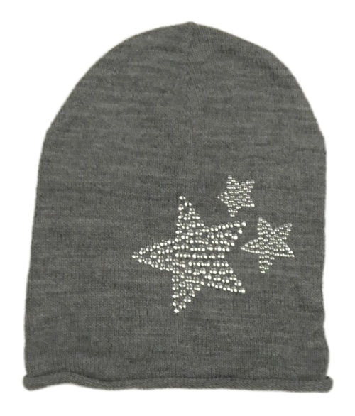 Šedá melírovaná pletená šmoulí čepice s hvězdičkami z peciček TCM