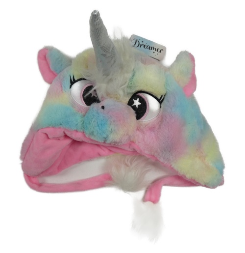 Nové - Barevná batikovaná plyšová čepice - jednorožec