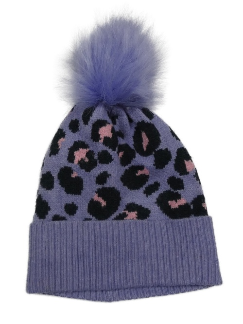 Fialovo-černá vzorovaná pletená čepice s bambulí M&S