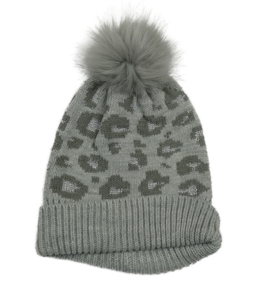 Šedo-tmavošedo-stříbrná vzorovaná melírovaná čepice s bambulí