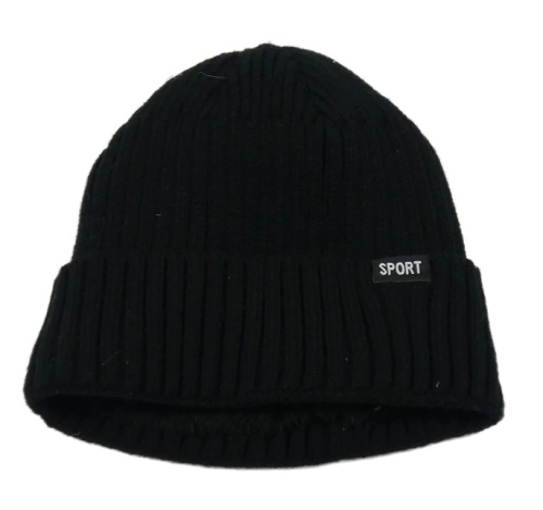 Černá žebrovaná pletená zateplená čepice s nápisem