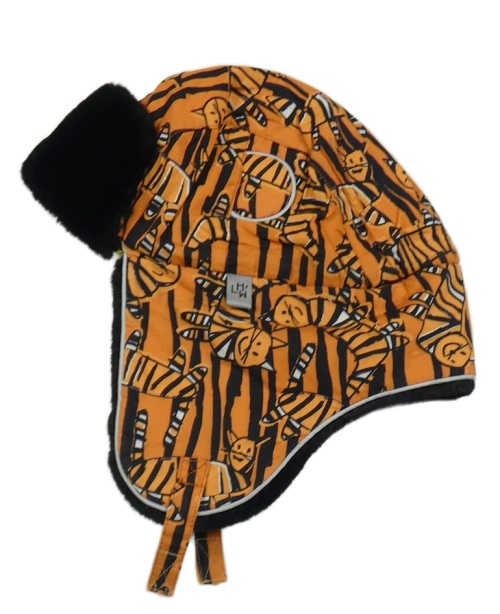 Oranžová vzorovaná beranice s kočkami a kožešinou
