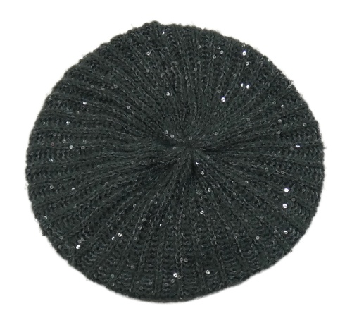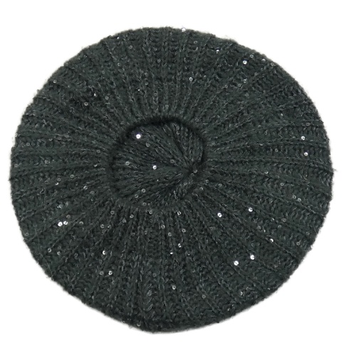 Tmavošedý pletený baret s flitry