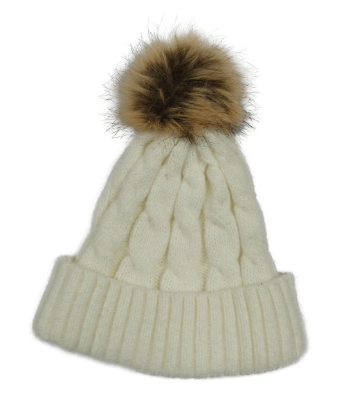 Smetanová žebrovaná/vzorovaná pletená čepice s bambulí